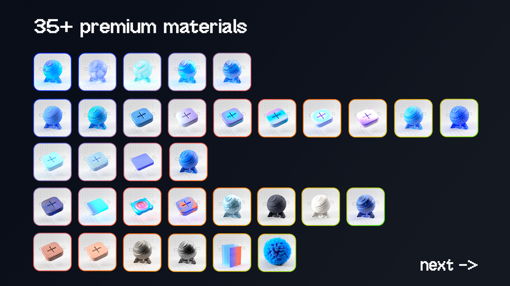 - 35+ Materials - Glass, plastic, wood, and more with organized textures